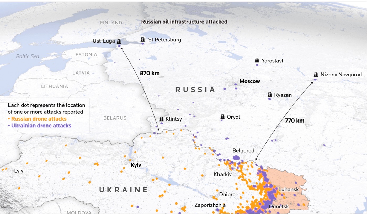 Figure 3. Long-range drone attacks during the Russo-Ukrainian War, as of March 2024