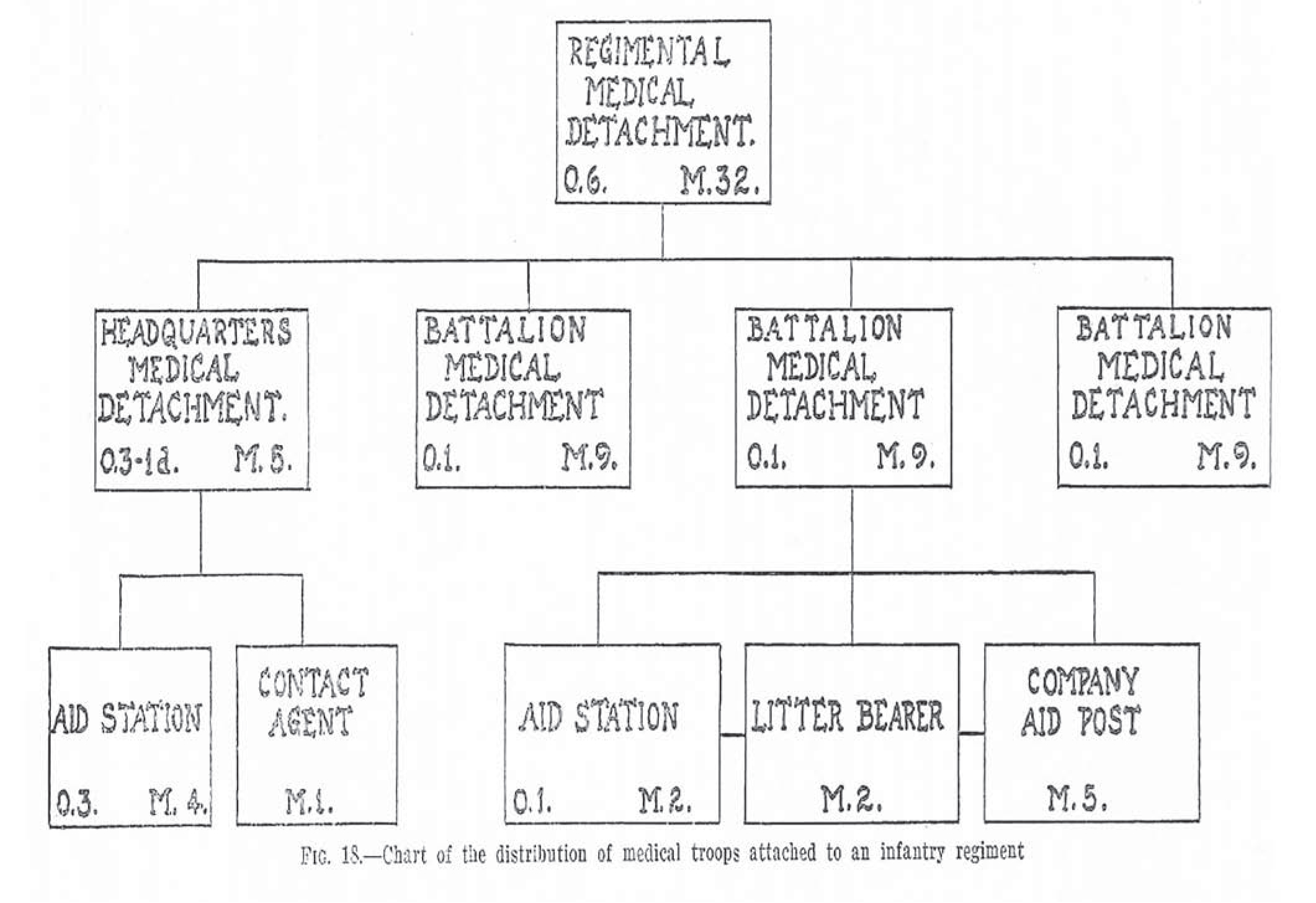Medical plan for Marine infantry regiment. Adapted from LCdr William L. Mann, USN, Medical Tactics in Naval Warfare