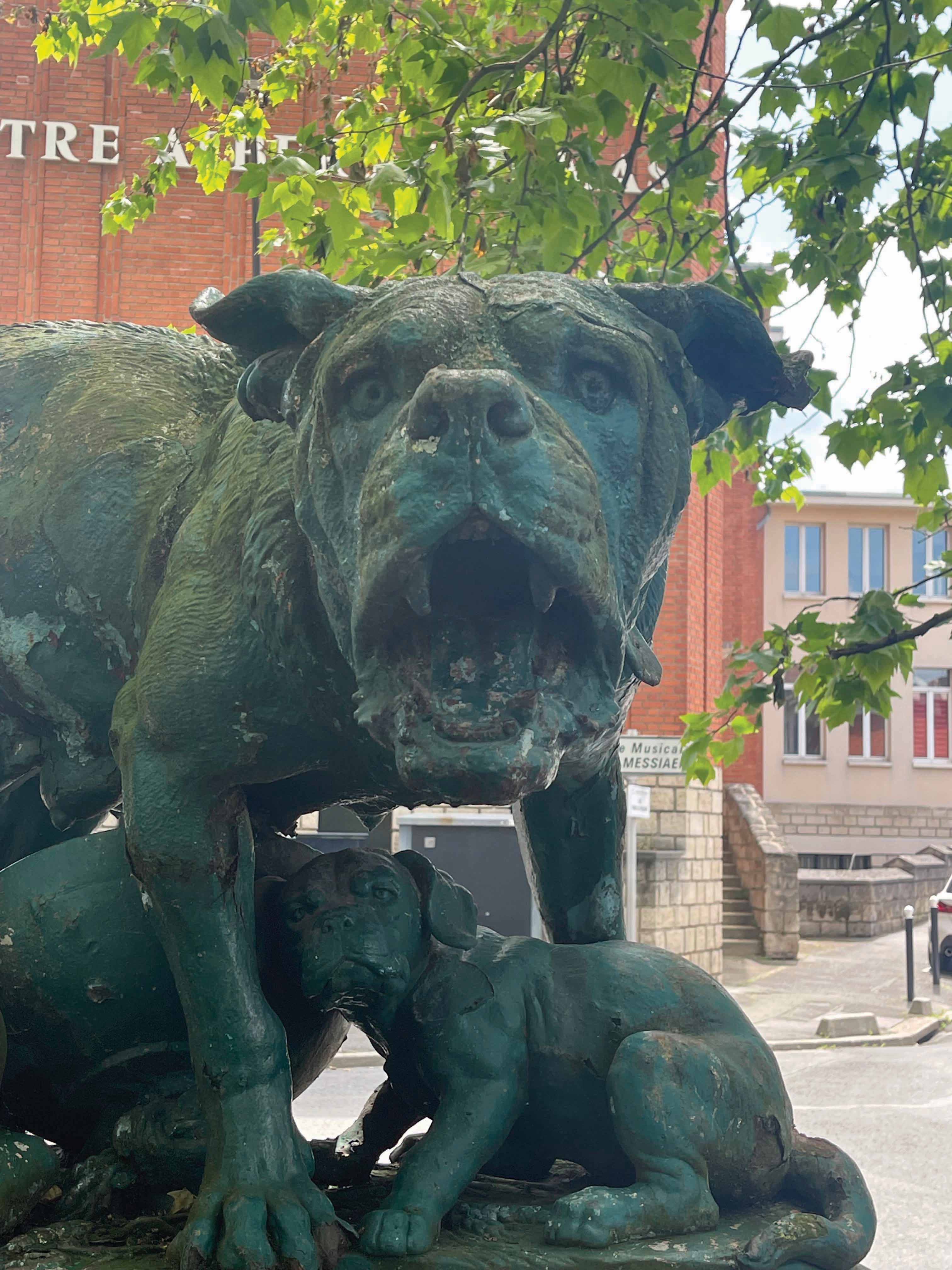 The Chienne sculpture at Place de la Dogue, Champigny.