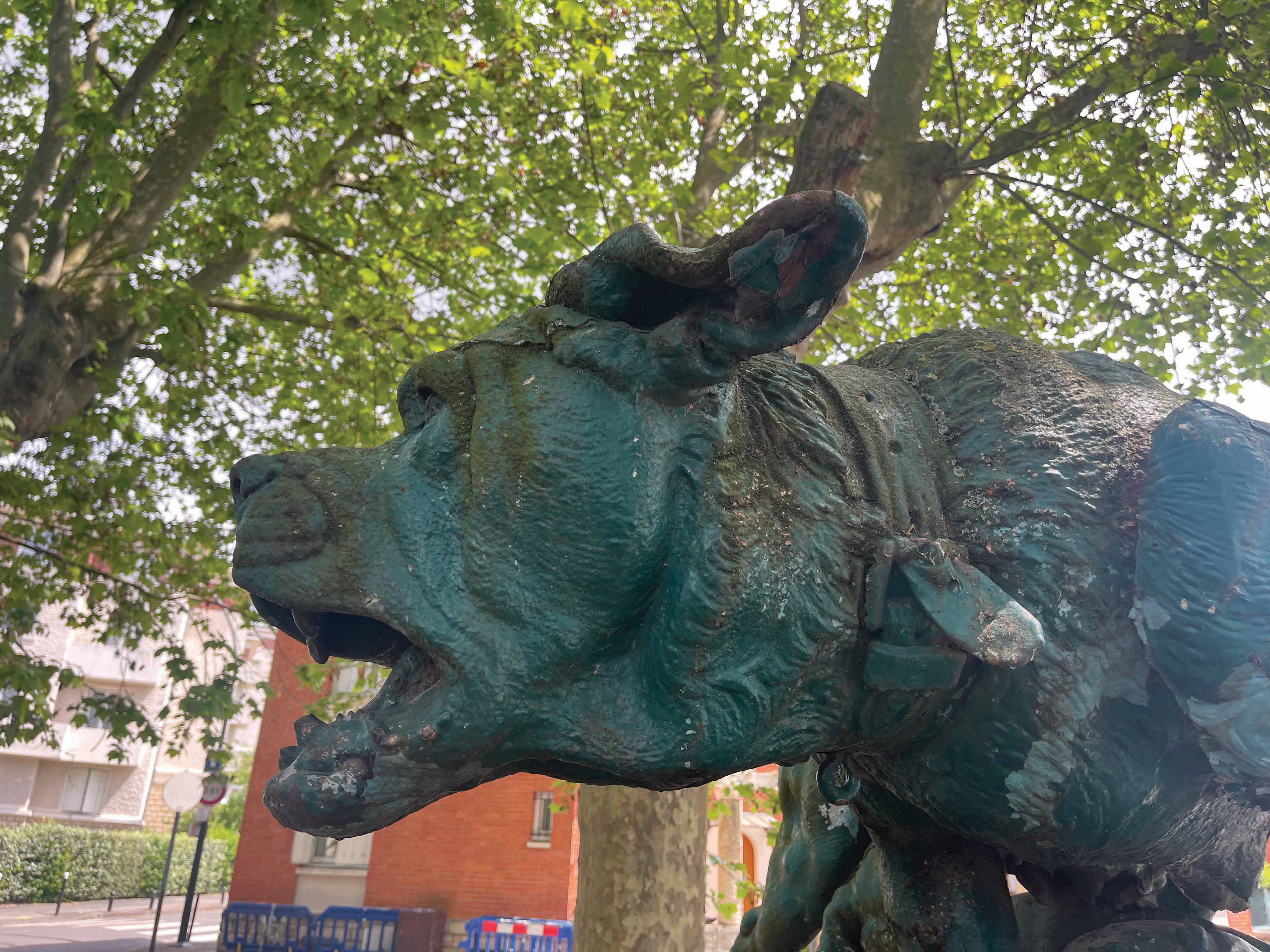 Another closeup view of Chienne’s head at Place de la Dogue, Champigny.