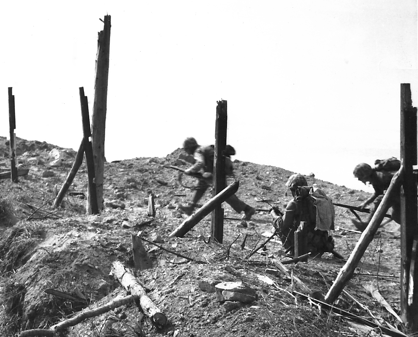 Pusan Perimeter, ca. August–September 1950. Marines advance under heavy small-arms and machine-gun fire during action against the North Korean Army.