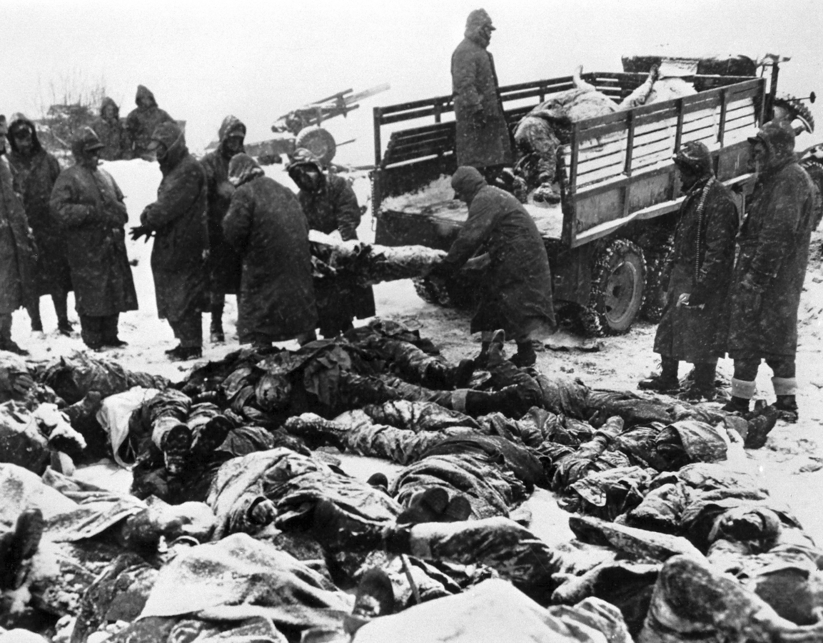 A mass burial of allied dead at Koto-ri, 8 December 1950.
