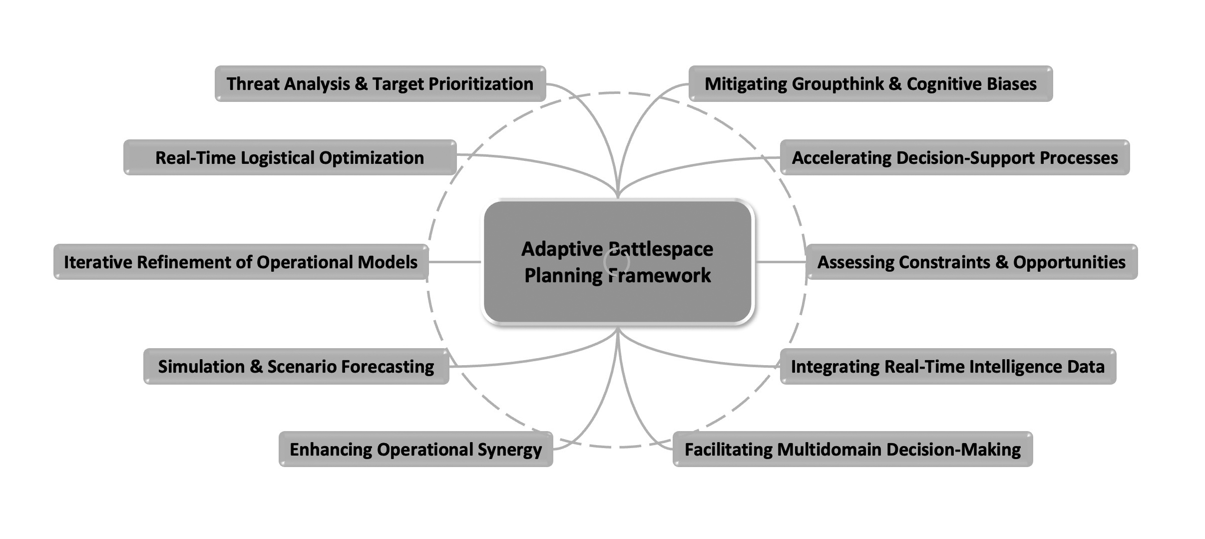 Humans have a natural tendency to oversimplify complex and ambiguous phenomena, perceiving them as more structured and controlled than they truly are. This cognitive bias limits critical discourse and prevents deeper exploration of alternative perspectives, thereby constraining the recognition, comprehension, and learning of new insights.63 During the operational planning process, AI agents serve as force multipliers by augmenting human expertise and enhancing the capacity to manage complexity. They can assist in strategic planning by autonomously distributing tasks, integrating external intelligence sources, and continuously refining their own performance. Their role becomes particularly vital during wargaming and scenario analysis, where AI-driven simulations can rapidly generate and assess thousands of alternative courses of action in real time. While human planners rely on cognitive reasoning and experience, AI agents provide a systematic, data-driven approach that significantly accelerates decision cycles and increases strategic foresight. Iterative feedback loops and machine learning mechanisms further refine AI agents’ accuracy, adaptability, and responsiveness, making them indispensable tools in modern multidomain operations. Their ability to process vast intelligence streams, optimize dynamic decision making, and function autonomously cements their role as essential components of next-generation operational planning frameworks.64