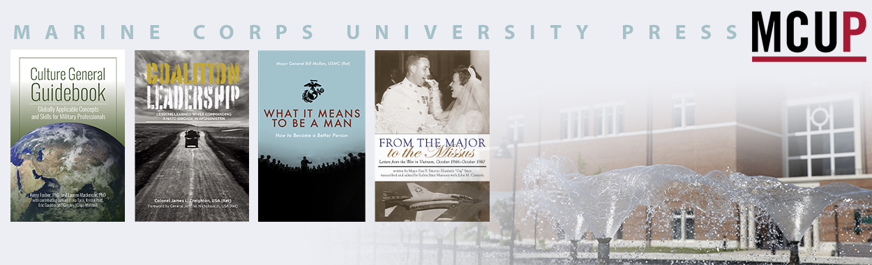 MCUP publishes a wide variety of scholarly books and journals throughout the year. MCUP must be creative, entrepreneurial, focused, and far-sighted to anticipate the current and future needs of Marine Corps University, History Division, and the broader DOD community in a rapidly evolving industry and respond with vision and commitment. NEW RELEASE Warfare in Peacetime Proxies and State Powers Email mcu_press@usmcu.edu to get a print copy.