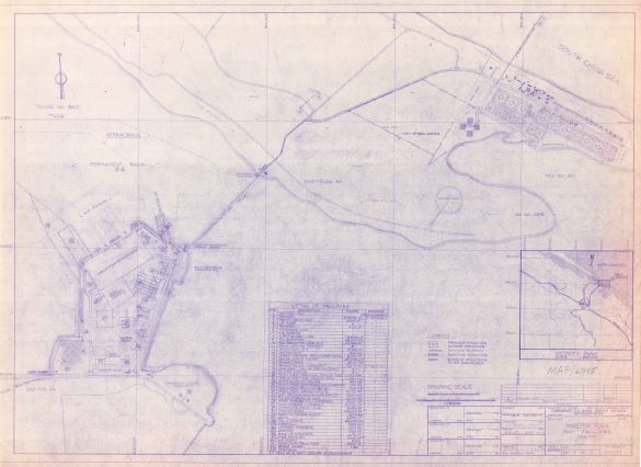 | NY-MAP/6371 Danang East Master Plan [Vietnam] [DN-BP-64] A blueprint copy of a portion of the Master Plan for the Danang East (BP-64), dated 15 December 1967.  Features include proposed buildings, including the NSA Trans Building and the Power Building. |