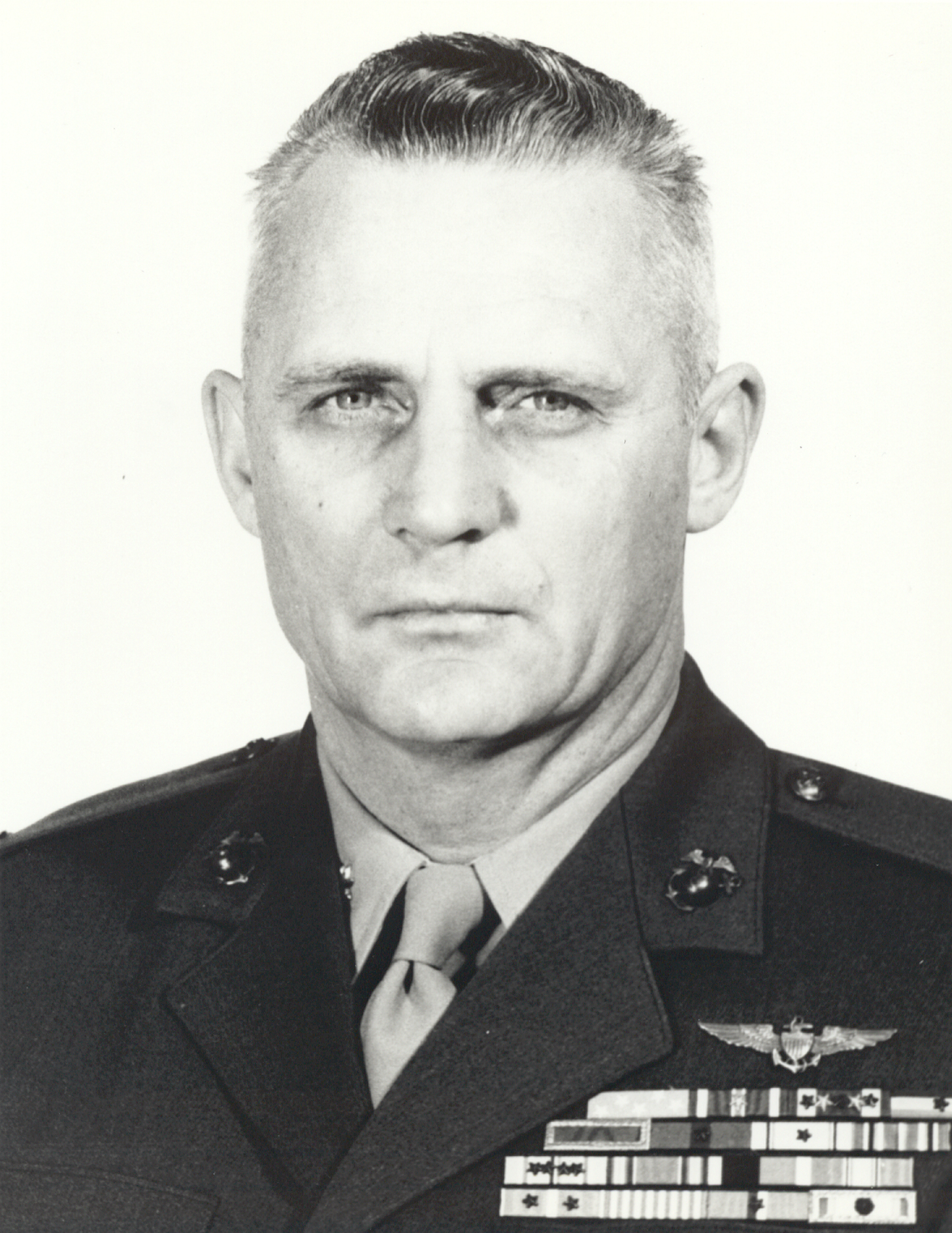 When the Japanese attacked Pearl Harbor, he was serving on the East Coast with Marine Fighting Squadron 121. He transferred to Marine Fighting Squadron 124 in September 1942, to be shipped overseas in January 1943, for duty in the Solomon Islands area. He was particularly active in aerial combat in the Vella LaVella vicinity in August 1943, while a division leader in his squadron. He scored all his 21 victories in the Vought "Corsair" F4U fighter.
