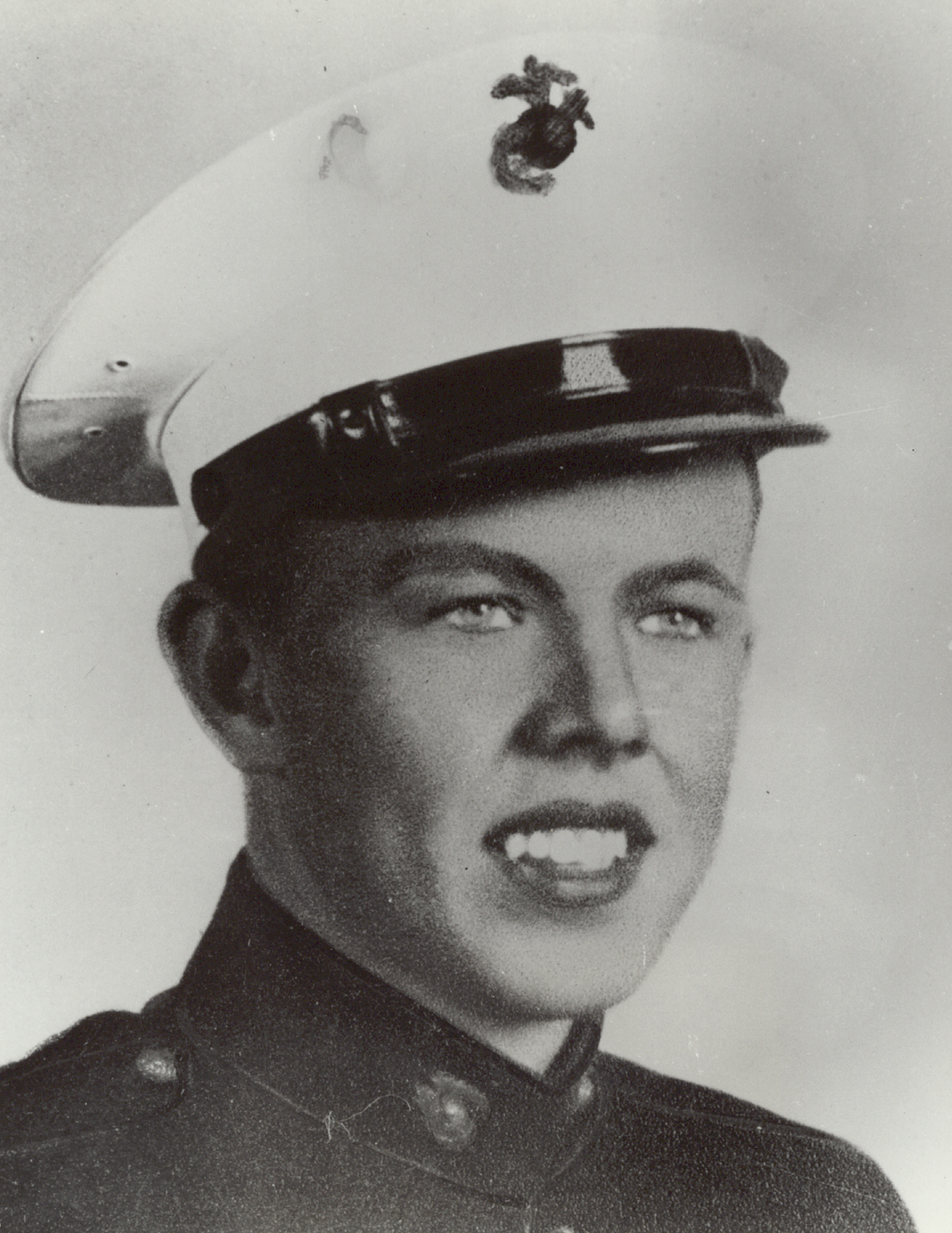It was on 6 May when Company C was advancing against a strongly fortified, fanatically defended Japanese position that Cpl Fardy's squad was suddenly brought under heavy small-arms fire. Cpl Fardy temporarily deployed his men along a convenient drainage ditch. Shortly afterwards, an enemy hand grenade landed in the ditch, falling among the pinned-down Marines. Instantly, the 21-year-old corporal flung himself upon the grenade and absorbed the exploding charge with his own body. Taken to a field hospital, Cpl Fardy died the next day.