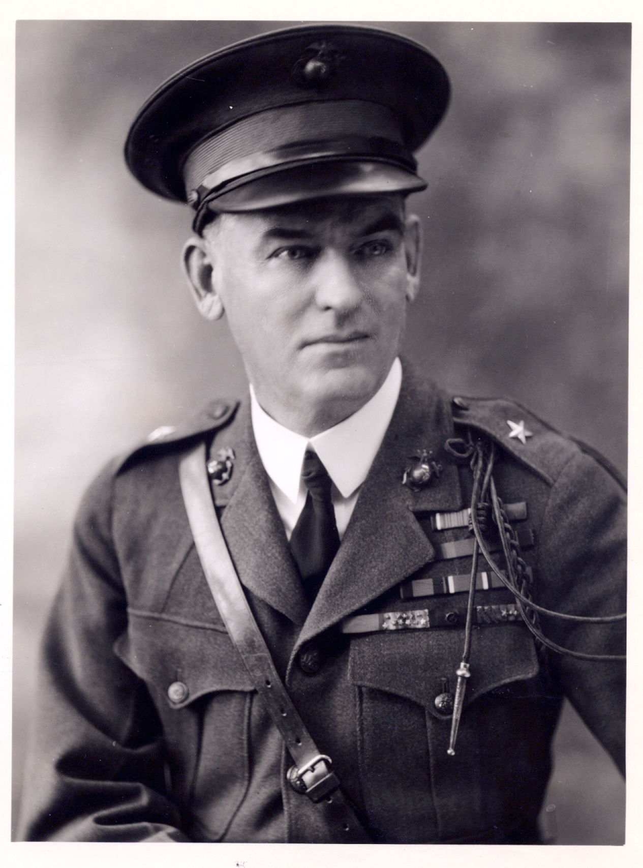 In the grades of lieutenant and captain he served with Marine detachments on USS Oregon, Massachusetts, Indiana, Minnesota, and Montana. Prior to World War I he had more than eight years of foreign duty including service in Panama in 1904 and in 1911; expeditions to Guantanamo Bay in 1904, 1911, 1912, and 1913; San Juan, Puerto Rico, in 1904; service with the Army of Cuban Pacification in 1906; service in Santo Domingan waters in 1912; Culebra in 1914; and the occupation of Vera Cruz, Mexico, in 1914. His home service was equally varied and included duty at Marine Barracks, Washington, D.C., League Island (Philadelphia), Narragansett Bay, Rhode Island, Norfolk, and New York; instruction in submarine mining at the Torpedo Station, Narragansett Bay; teaching in the School of Application, Annapolis, and the Advanced Base School, New London, Connecticut; observation of Army artillery practice at Fortress Monroe, Virginia; the supervising of construction of new barracks at Annapolis; and recruiting in New York.